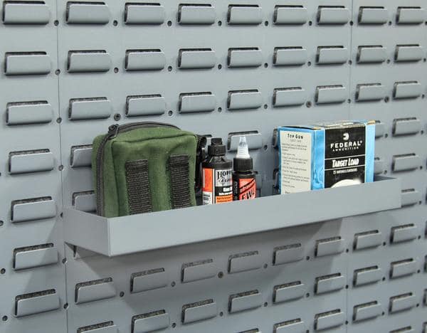 Storage trays fit behind and above rifles and other weapons, providing convenient storage for magazines, optics and other small gear. This tray can be used with retrofit kits, cabinets and gun wall kits. It hangs from six louvers on the back grid. Armory space is some of the most valuable real estate in the world. SecureIt storage trays allow you to maximize your storage density.