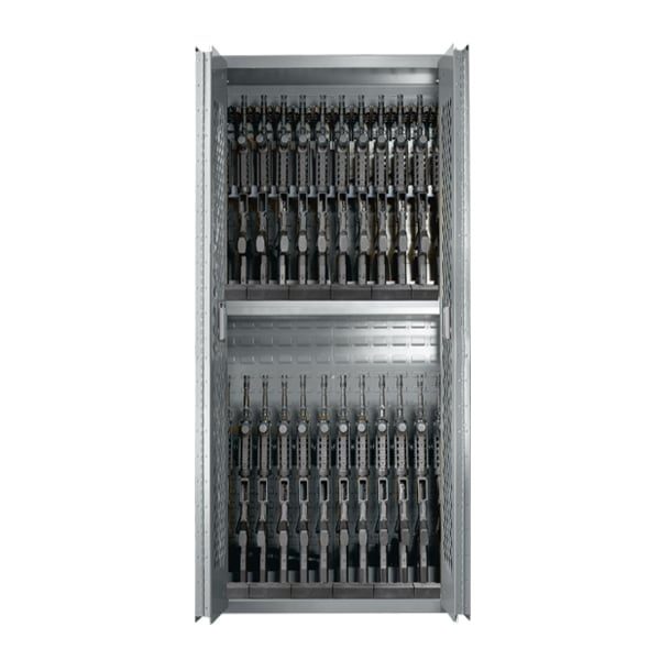 The model 72 is effective where height is restricted. In many armories, sprinkler system clearance requirements can make the use of taller weapon racks impossible. The Model 72 if the choice when total system height is a concerm